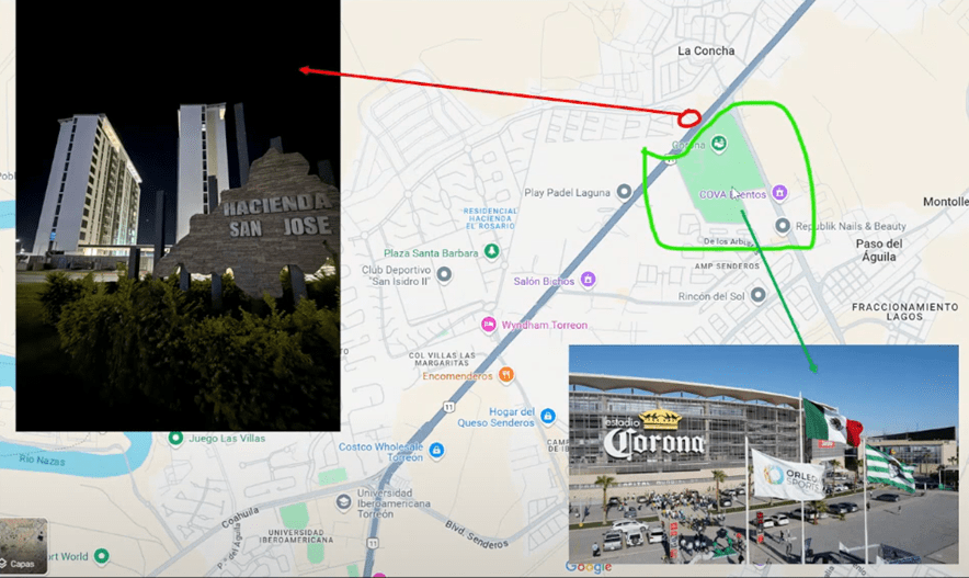 En esa imagen puedes ver el departamento que compré, está justo enfrente del estadio del Santos Laguna.