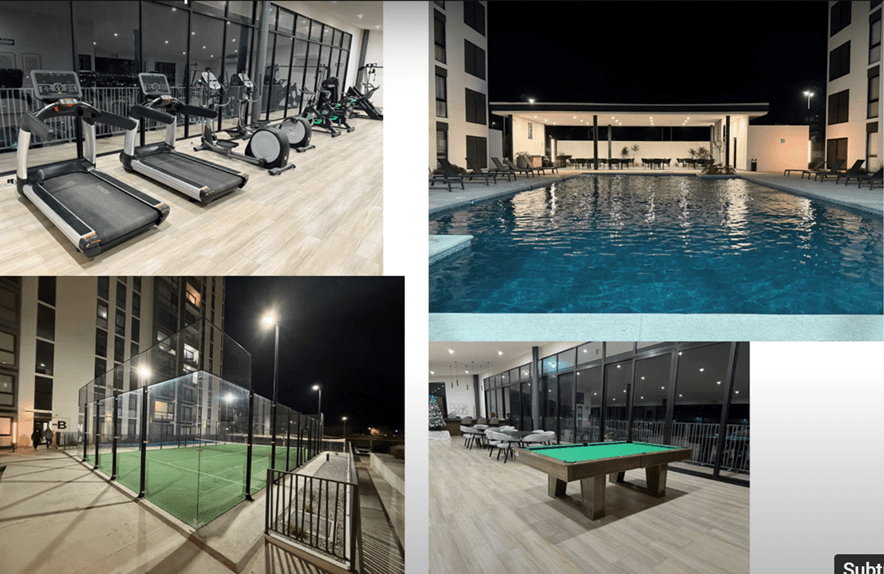 Pero, cada torre tiene en el último piso un gimnasio muy equipado, una mesa de billar y un área social por si quieres tener algún convivio.
