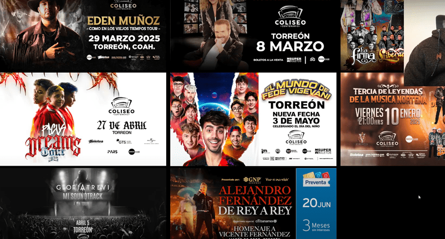 Este es un ejemplo de la cartelera de conciertos para este 2025.