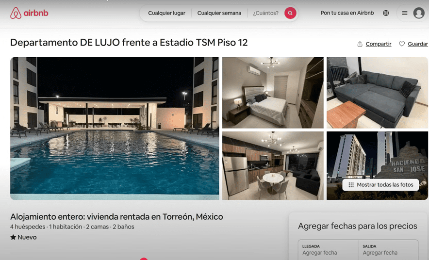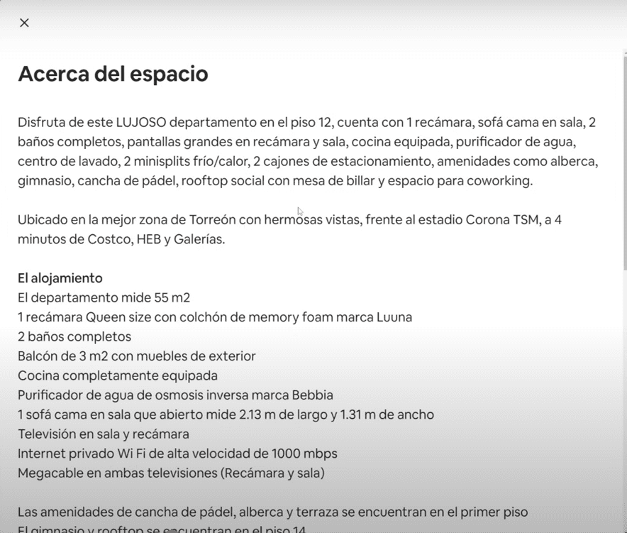 Te voy a mostrar una imagen de cómo es que aparece mi Airbnb ya con todo amueblado en la aplicación.