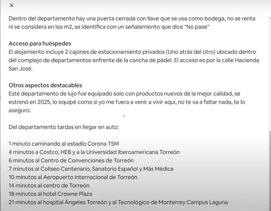 Y como dato adicional, en la descripción puse cuánto tiempo se hace del departamento a los lugares más concurridos y bonitos de Torreón.