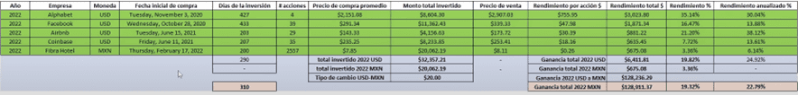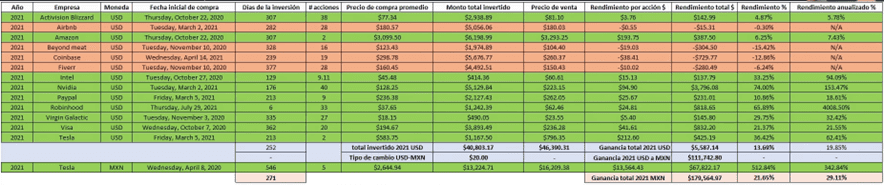 2021 fue un año muy bueno también a pesar de que hubo algunas acciones qué se vendieron con pérdida.