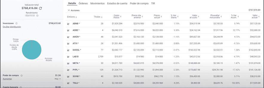 El portafolio que volví a armar en 2022 lo llegué a tener como en -$150,000 pesos, pero como nunca vendí y seguí comprando, se ve de la siguiente manera.