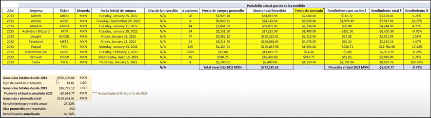 Esta acción la compré en enero de 2022 y la vendí hasta abril de 2023, fue una ganancia en un poco más de un año.