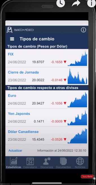 En iPhone se llama Banxico al día para iPhone, le van cambiando un poco el nombre y en Android tal vez se llame diferente.