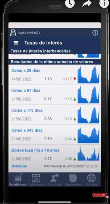 Y en esta aplicación lo puedes estar monitoreando, también vienen las tasas de los bonos.