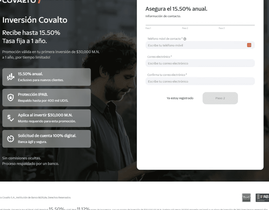 Lanzaron la inversión covalto, donde puedes recibir hasta 15.50% anual, es una inversión a plazo fijo de un año.
