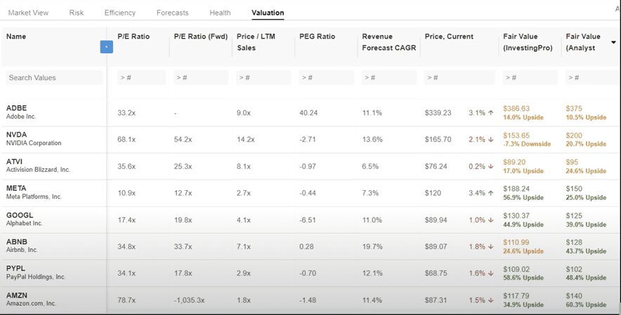 Y te puse las empresas que yo tengo en mi portafolio que son 8, Amazon, Google, Meta, Adobe, Nvidia, Activision Blizzard, Airbnb y PayPal.