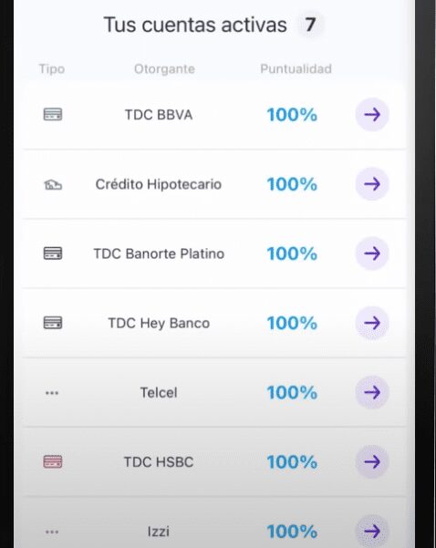 Puedes darle clic a la tarjeta o crédito que tú elijas y ver a detalle los pagos que has dado y si has sido puntual o no.
