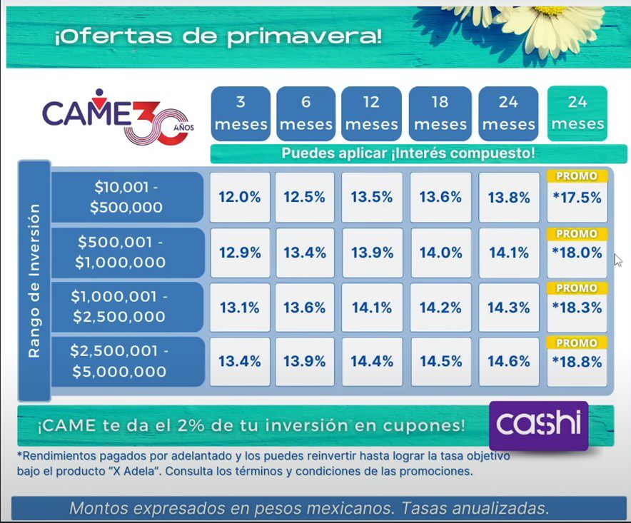 Yo he visto que la SOFIPO CAME tiene promociones extremadamente agresivas de captación.