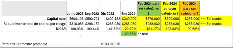 Una de las SOFIPOS más grandes de México acaba de reportar un NICAP inferior al 131% y por lo tanto acaba de caer a categoría 2.