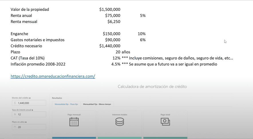 Ejemplo con una propiedad de $1.5 millones de pesos