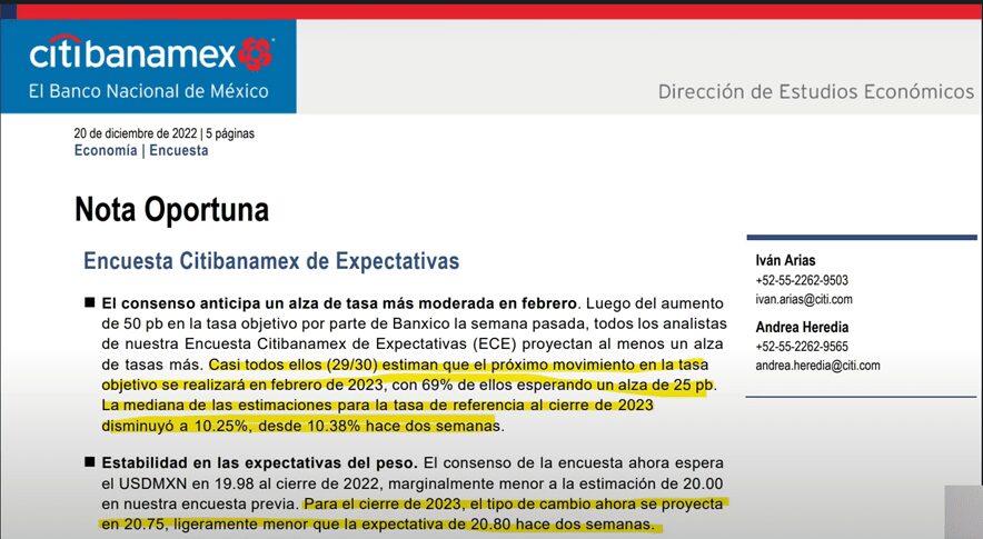 Te voy a mostrar una encuesta que publica Citibanamex y es una encuesta de expectativas económicas.