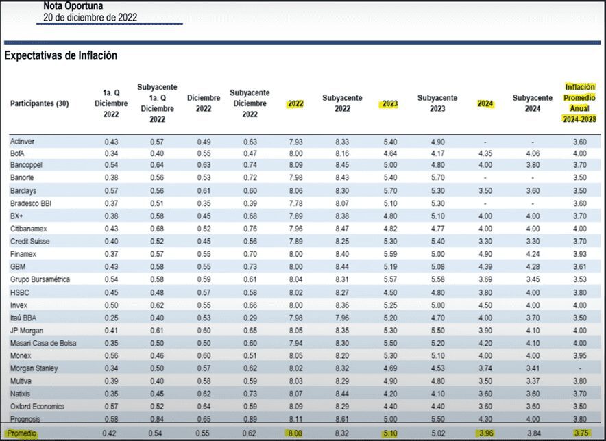Para 2023 la gran mayoría estiman una tasa del 5.25%, actualmente la tasa que ellos tienen es de 4.5%.