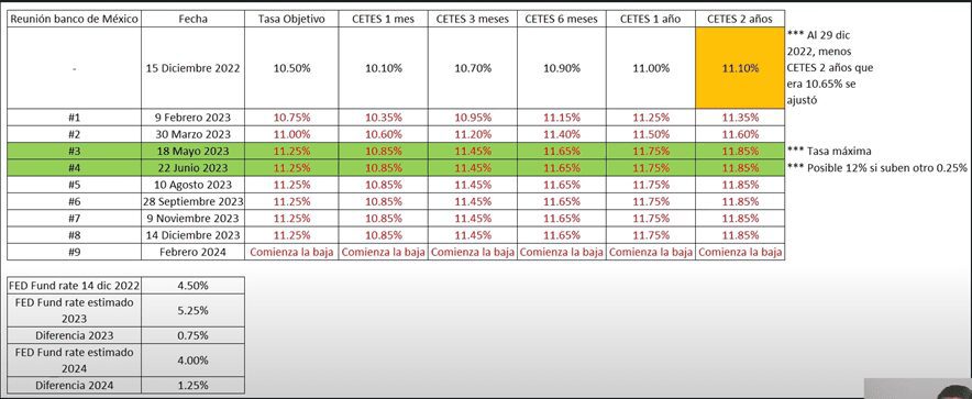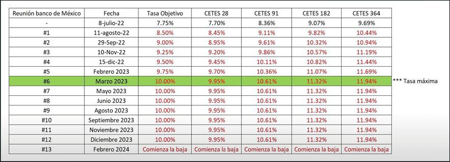 Tengo que actualizar esta tabla porque sí aquí yo creía que los CETES podrían llegar al 12% con más razón voy a creer que van a llegar a eso o incluso más.