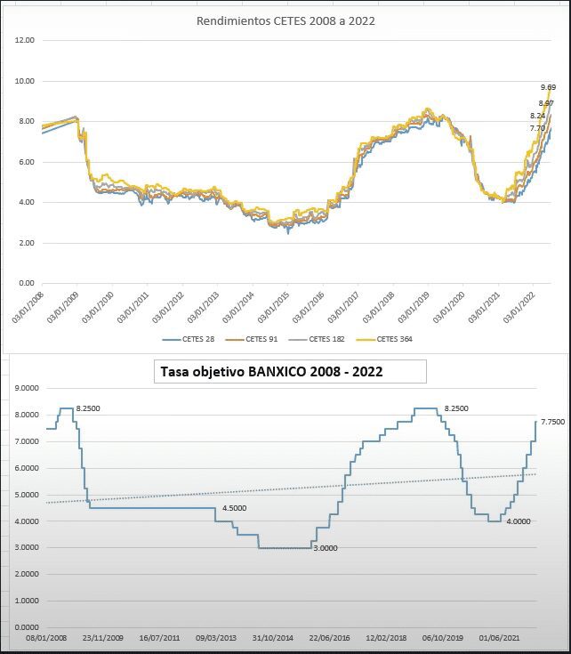 Ahorita como estamos en una inflación muy alta, las tasas están subiendo y por eso los instrumentos de renta fija como Cetes han estado subiendo también.