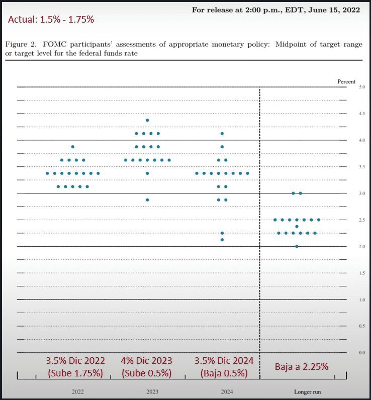 Te voy a mostrar una gráfica con varios puntos qué representan lo que consideran los miembros de la reserva federal de Estados Unidos.