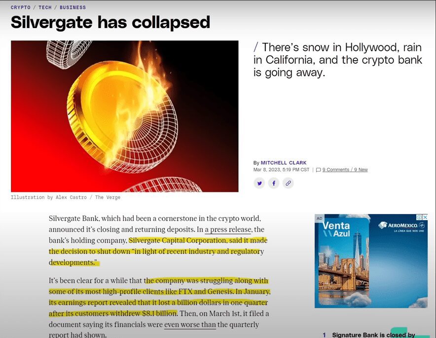 En esa nota dice que Silvergate Capital Corporation va a cerrar el banco en vista de lo que está pasando con la industria y las regulaciones.