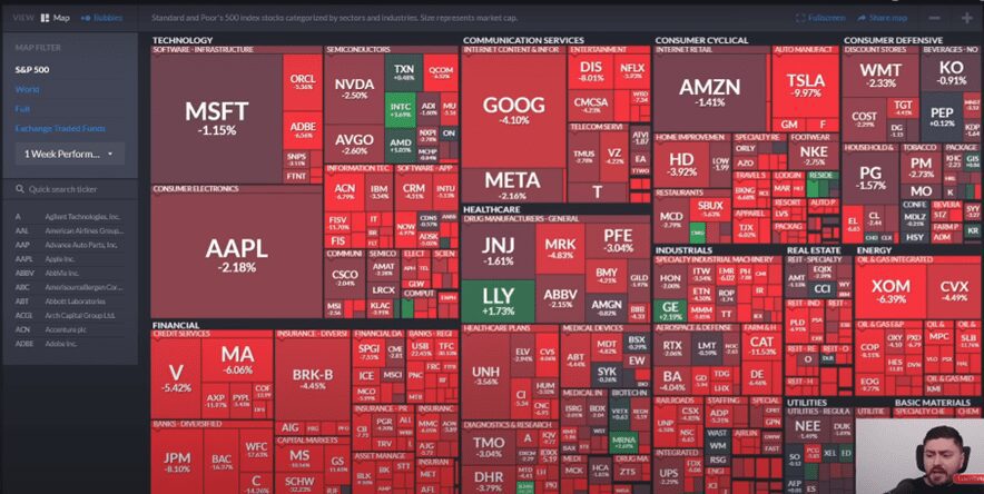 Como ves la mayoría de estas acciones está en rojo, pero en la esquina de abajo a la izquierda está el sector financiero.