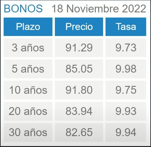 Por ejemplo, sí agarras el de 3 años te van a dar el 9.73% al año sobre tu inversión y si lo agarras a 30 años te van a pagar en 9.94% al año.