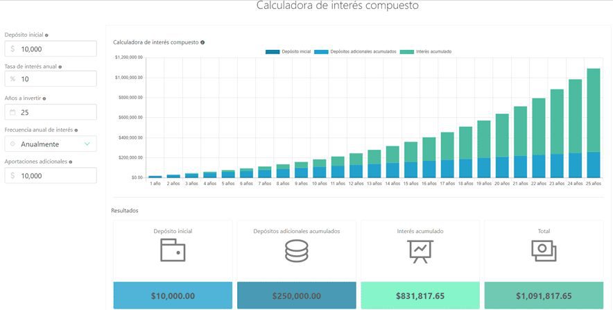 Al final de todo ese plazo utilizando el poder del interés compuesto tendrías $1 millón de pesos.
