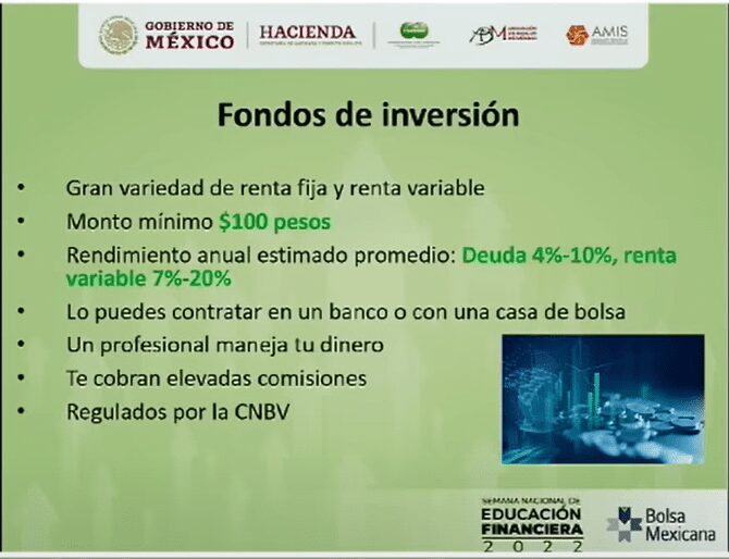 También están los fondos de inversión, qué la mayoría de las casas de bolsa te va a ofrecer.