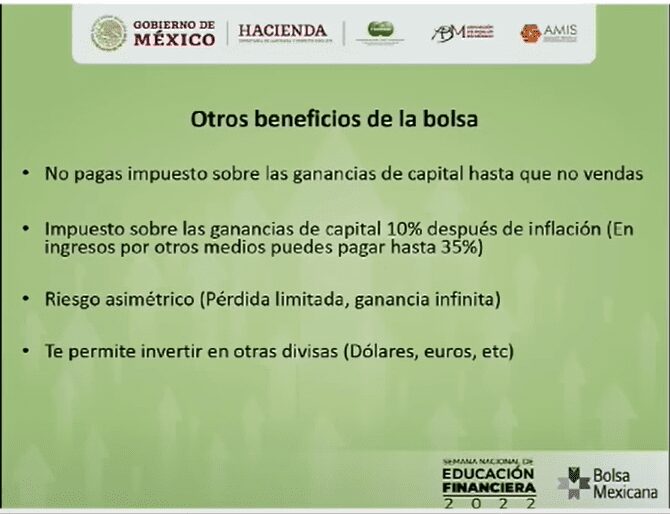 Y te voy a mostrar en una imagen otros beneficios extras que tiene invertir en la bolsa de valores.