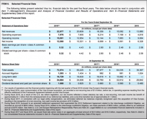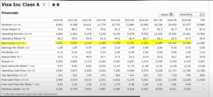 En el ejemplo de Visa viene de 2015 a 2019 y ahí puedes ver a detalle como las ventas han ido creciendo.