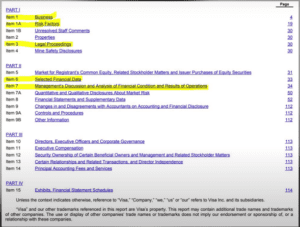 Aquí vamos a ver el ejemplo de Visa más reciente, este es solo de 46 paginas, mucho mas pequeño que el que estábamos viendo del reporte anual.