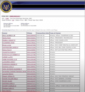 Vas a presionar ahí y te va a aparecer una lista de todos los insider, es decir de todas las personas que trabajan en Visa, para ver qué están haciendo con sus acciones.