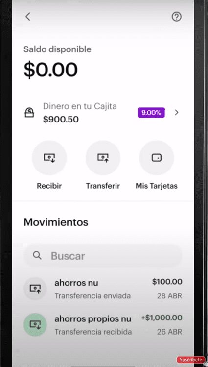 Se puede ver como dice “Dinero en tu cajita $900.50 pesos” y abajo vienen mis movimientos.