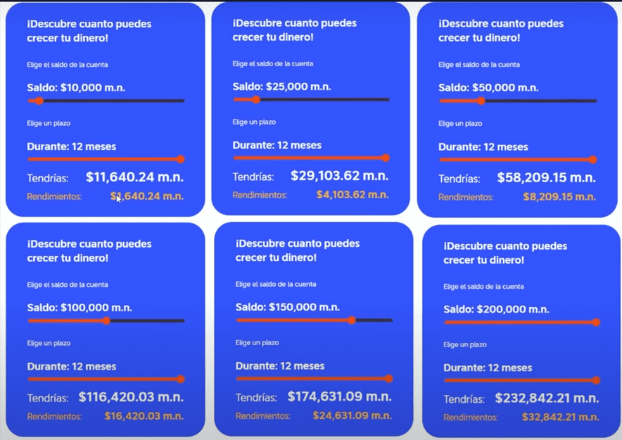 Por ejemplo, si tu inviertes $1,000 pesos y los dejas ahí un año, al final tendrías $1,162 pesos, ya considerando el interés compuesto y que la tasa no cambiara.