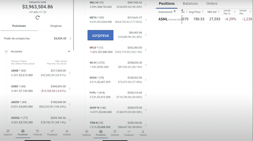 Por lo general, todas mis acciones estan en verde, por ejemplo, la de Meta lleva 177% en 3 años, la de Netflix 163% en 2 años, la de Mercado Libre 94% en un año tambien, etc.