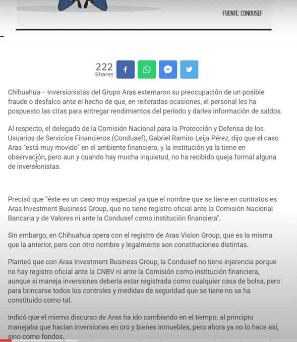 Se llama Aras Visión Group, para decir que estaban registrados en la CONDUSEF y tratar de engañar al inversionista diciendo que ahora sí estaban regulados.