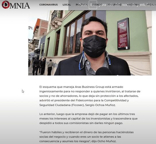 Pero después, viene otra nota del 16 de noviembre de 2021 donde dice que “El esquema de inversionista no protege a los afectados de Grupo Aras, advierte la IP”