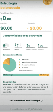 Pero esto del seguro está interesante, si tú inviertes $20,000 pesos o más te regalan un seguro, mientras lo tengas invertido en el fondo de la estrategia balanceada.