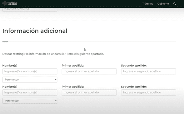 Completas todos los datos de tu familiar, puede ser tu papá, tu mamá, un hermano, etc., y así quedaran ambos registrados.