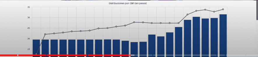 Omar: Les voy a compartir la gráfica de las distribuciones históricas de Fibra Nova.