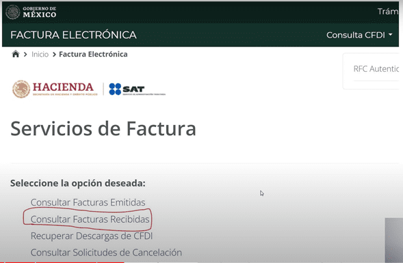 Y le vas a dar clic en donde dice consultar facturas recibidas.