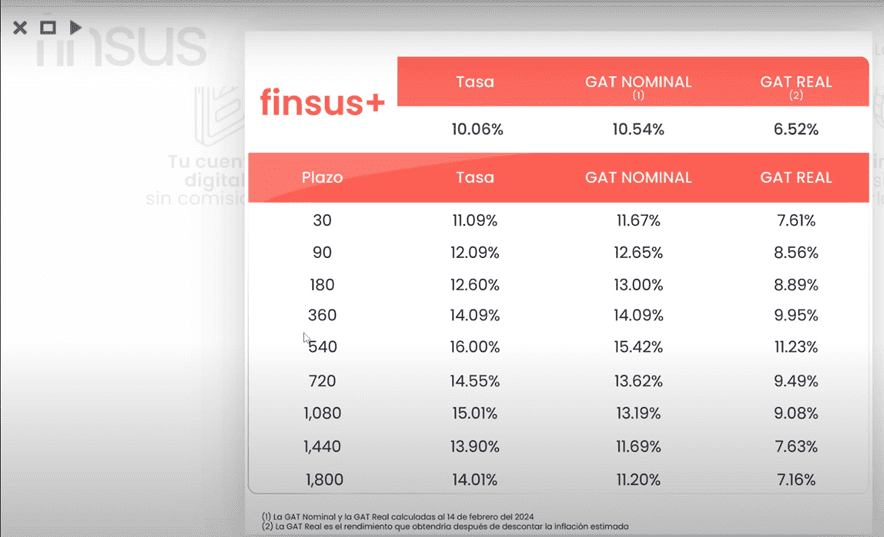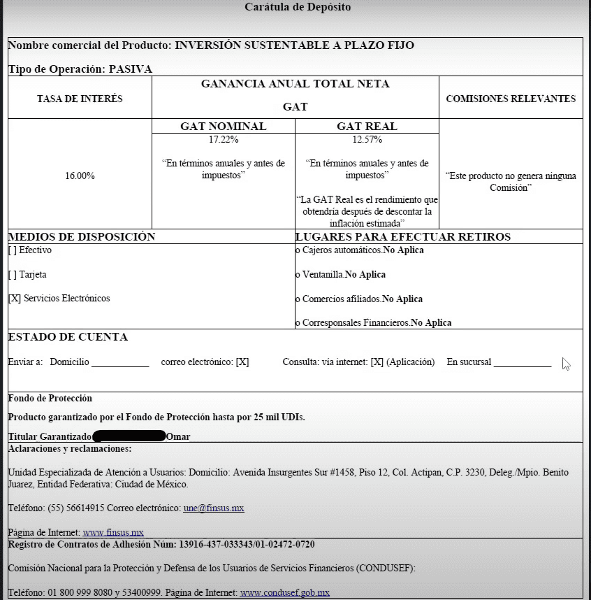 Así que decidí meterlos a este nuevo plazo de FINSUS que es a 18 meses con una tasa del 16% anual con pago mensual.