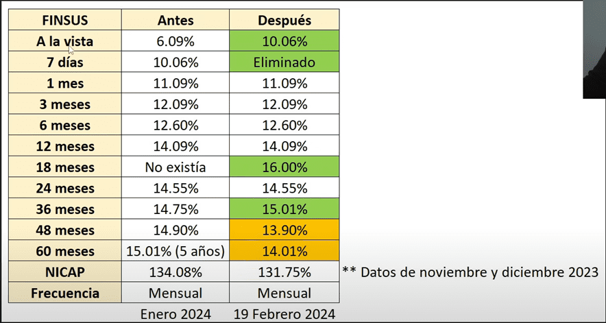 En el plazo a 3 años o 36 meses subió la tasa, antes pagaban 14.75% y ahora te pagan el 15.01%.
