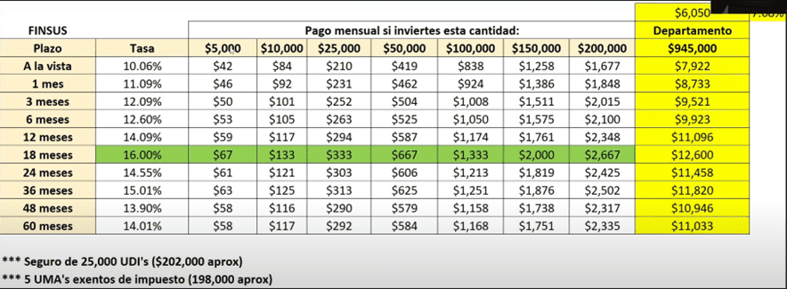 Si yo invirtiera esa misma cantidad en FINSUS sabiendo que el seguro solo es por $200,000 pesos estaría ganando más del doble que lo que gano en la renta del departamento.