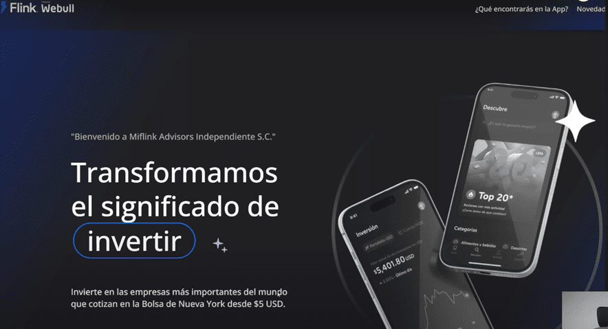 Donde la casa de bolsa Webull adquiere a Flink y ya están operando en el mercado mexicano y en otros 8 países.