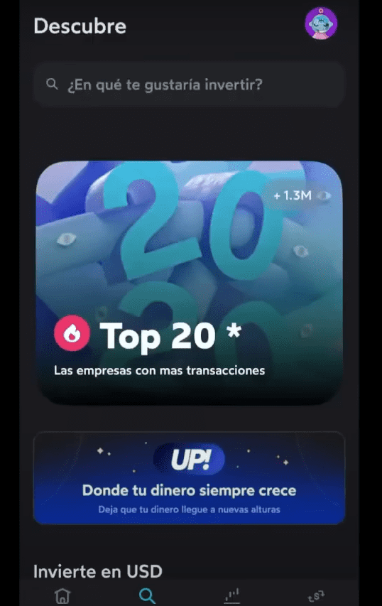 Como puedes ver dice que puedes comprar y vender fracciones de acciones desde $5 dólares, hoy obtener ganancias diarias con solo tenerlo en la cuenta Up, recibir dividendos de las empresas y aprovechar el tipo de cambio de dólar a peso y viceversa.