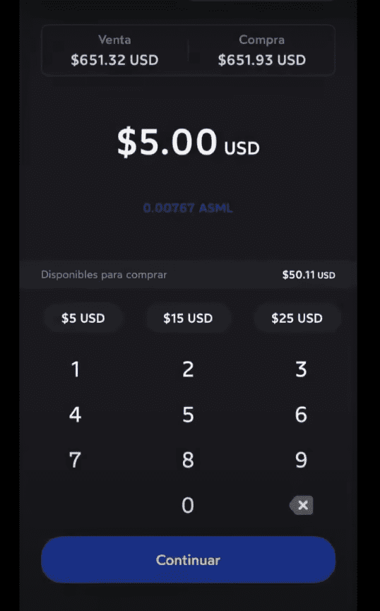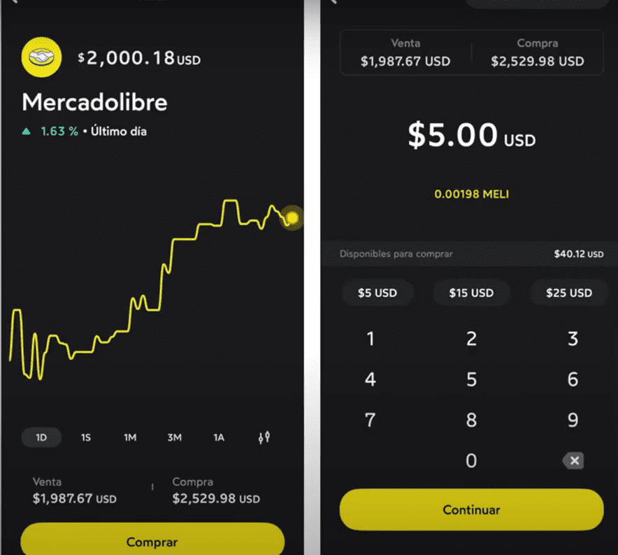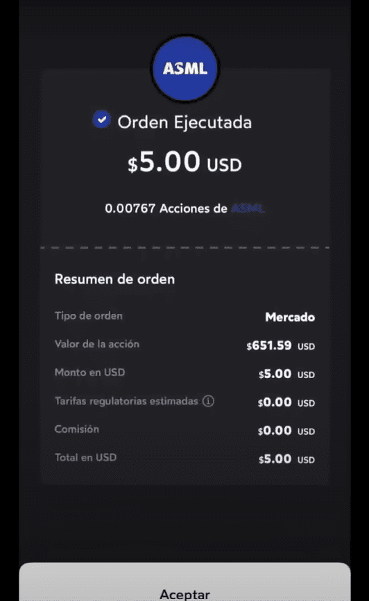Por ejemplo, yo haré una compra de $5 dólares de esta acción para que veas cómo funciona.