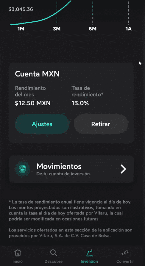 Aquí el dinero que tú te transfieres entra en automático aquí y ya si decides convertirlo en dólares para comprar acciones ya no te daría este rendimiento.