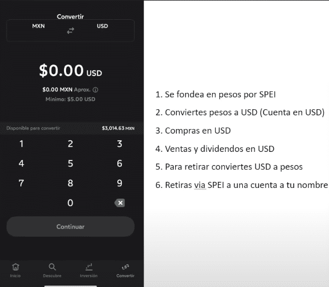 Si recibes un dividendo o si vendes tus acciones vas a recibir eso en dólares y si lo quisiera retirar pues conviertes los dólares a pesos mexicanos y te los transfieres a tu cuenta mexicana por un SPEI.