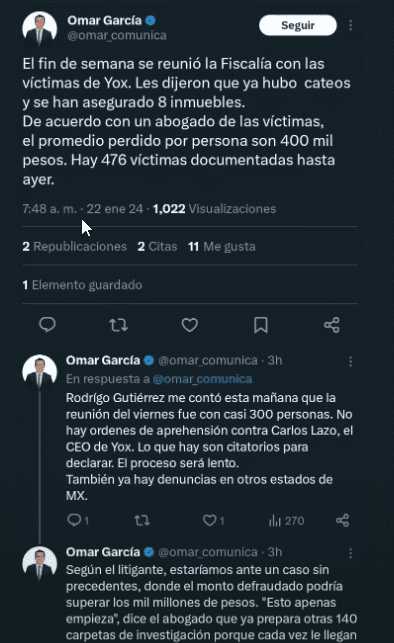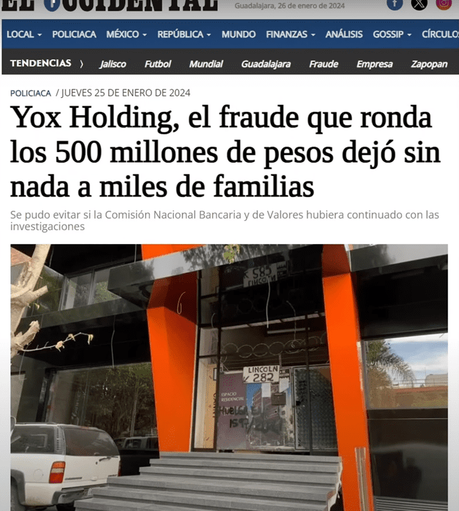Te voy a mostrar algunas notas donde hablan del fraude de Yox, que ronda los $500 millones de pesos.