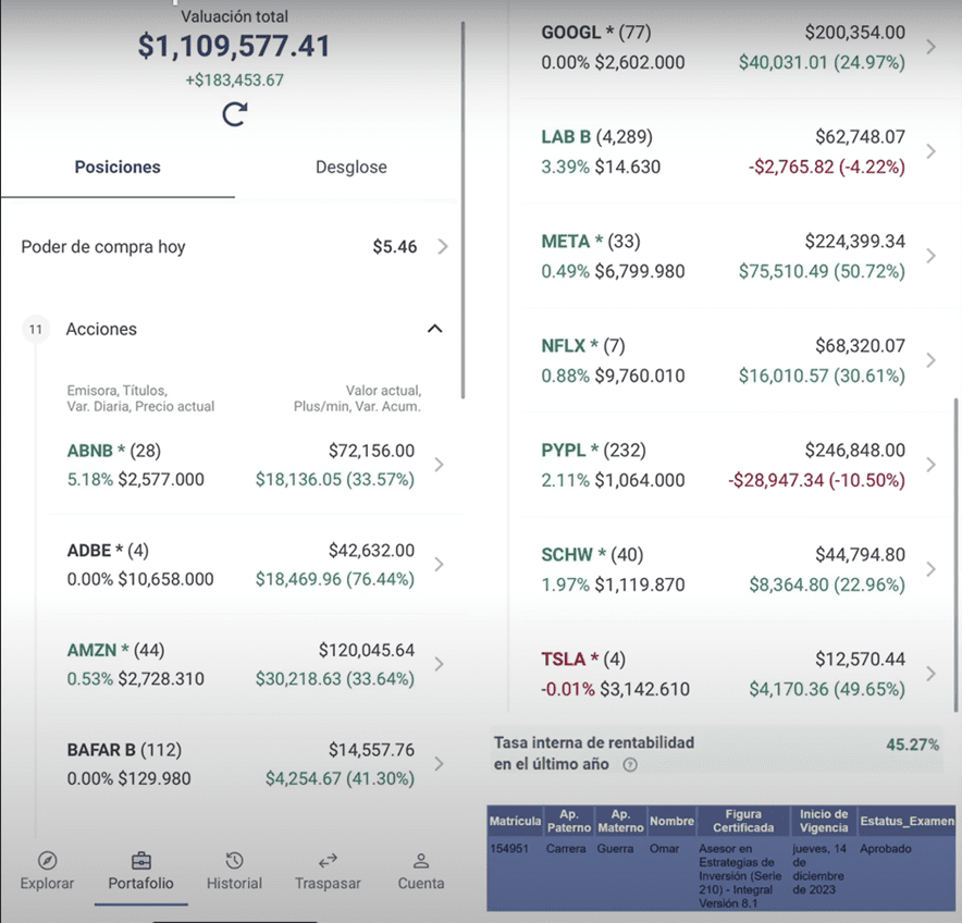 Te voy a mostrar mi portafolio en la bolsa de valores, donde ya tengo invertido más de $1 millón de pesos.