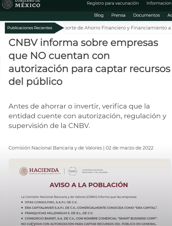 Al final dice que la Comisión Nacional bancaria de valores apuntó que estas firmas no cuentan con autorización para captar recursos del público en general.